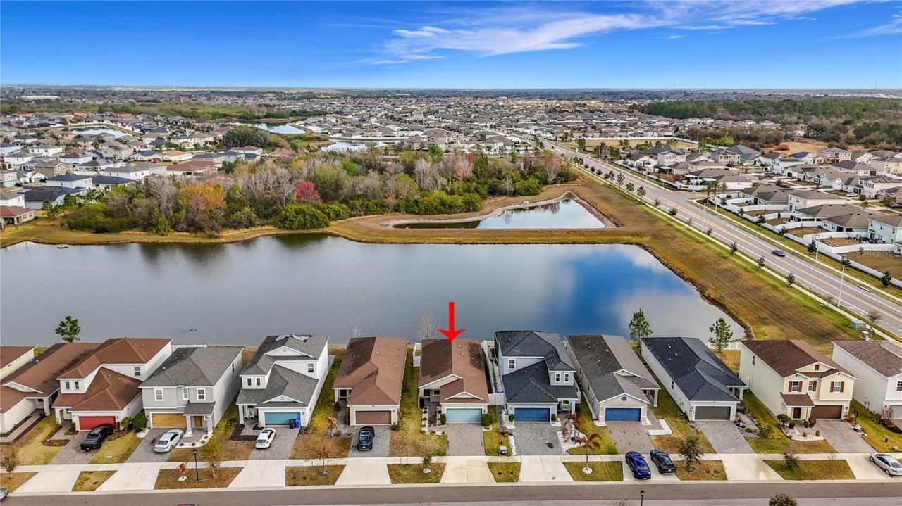 One or more photo(s) has been virtually staged. Welcome to waterfront living in the heart of Riverview's highly sought-after South Fork community. Built in 2019, this beautifully maintained three-bedroom, two-bath home with a two-car garage offers the perfect blend of modern design, open-concept living, and peaceful water views. Step inside to a bright, expansive layout designed for everyday comfort and effortless entertaining. The oversized kitchen island anchors the living space and features sleek black granite countertops, white shaker cabinetry, stainless steel appliances, and abundant storage. Tile flooring throughout the main living areas provides durability and style, while the neutral color palette creates a warm, inviting space that's easy to personalize. Step outside to your covered lanai overlooking tranquil water views. The fully fenced backyard offers privacy and is ideal for pets, relaxing evenings, or hosting gatherings with family and friends. Enjoy bug-free evenings with the retractable lanai screen while taking in the peaceful waterfront setting. Living in South Fork means enjoying resort-style amenities including a community pool, basketball courts, tennis courts, disc golf, dog parks, playgrounds, and miles of scenic sidewalks perfect for walking, biking, and enjoying Florida's beautiful weather. Conveniently located just minutes from the Summerfield Sports Complex, major highways, shopping, dining, hospitals, Tampa International Airport, Gulf Coast beaches, and world-famous theme parks, this home offers the perfect balance of lifestyle, location, and comfort.