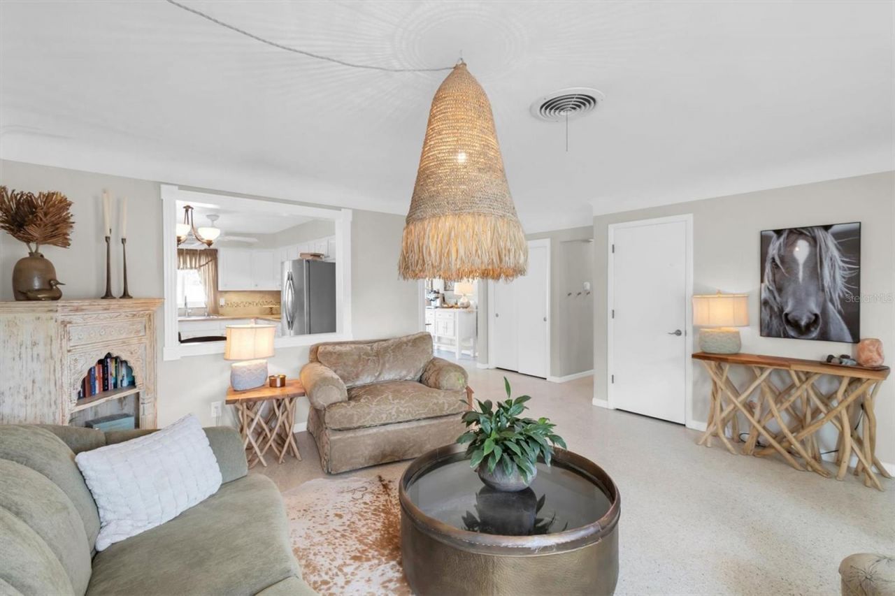 This home is truly exceptional. You really must see this professional designer owned, well-maintained, and updated 3BR/2BA home in the desirable Oakhurst neighborhood, less than 2 miles from beach access and located in a low risk X flood zone (58 ft elevation). This 1964 home features rare terrazzo floors, curved ceilings, and enhanced curb appeal with fresh exterior paint (2023). The seller has commited to install a new roof based on agreement on a satisfactory contract. The layout includes a bright living room with bay windows, a flexible kitchen with a farmhouse sink, newer Whirlpool dishwasher, and ample storage, plus updated bathrooms with granite and modern finishes. The spacious primary suite offers Walk-through closet and an en-suite bath, while additional living areas include a family room and sunroom overlooking the pool-ideal for relaxing or a home office.The private backyard features a 10' deep kidney-shaped pool with a newer pump, patio space, firepit area, and vinyl privacy fence. Key upgrades include impact-rated windows and sliders, storm awnings, insulated garage door, updated electrical panel, and a well-maintained Trane A/C.Additional highlights include a 2-car garage with storage, attic access, extra parking, and a well-fed sprinkler system. Conveniently located near top-rated schools, parks, shopping, dining, and Seminole City Center.