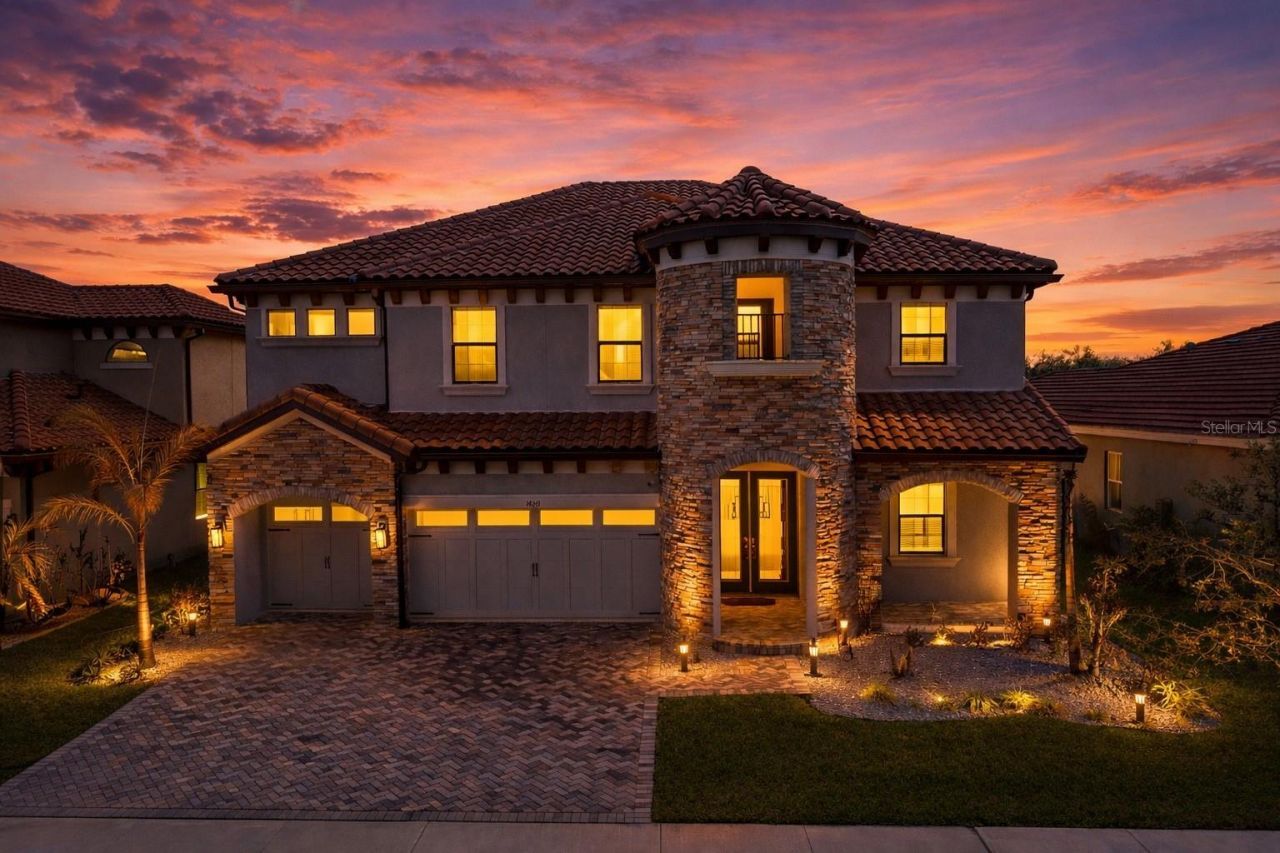 Welcome to LUXURY living in the GATED enclave of Hawkstone Artisan, where executive-style homes built by WestBay are thoughtfully crafted on OVERSIZED HOMESITES. This stunning Verona floor plan with European Country elevation offers over 3,500 square feet, 5 bedrooms, 4 baths, a backyard oasis and POOL, and a 3-car garage with a built-in Tesla EV charger. Step inside this beautifully designed two-story open concept home where a welcoming foyer leads to a private den/study, ideal for working from home or creating a quiet retreat. The expansive grand room, features DRAMATIC SIX-PANEL GLASS SLIDERS that flood the space with natural light and seamlessly connect indoor and outdoor living. The adjoining casual dining area and gourmet island kitchen create the perfect setting for entertaining and everyday living. The chef's kitchen showcases white cabinetry, Calacatta QUARTZ countertops, stainless steel appliances, a designer backsplash, corner pantry, and an extended center island perfect for gathering with family and friends. A convenient FIRST-FLOOR GUEST SUITE with full bath provides privacy and flexibility for visitors or multigenerational living. Upstairs, you'll find an expansive bonus room, ideal for a media space, game room, or additional lounge area. The private owner's retreat offers a peaceful escape featuring a large bedroom with an ensuite including separate his and hers vanities, a standalone soaking tub, oversized walk-in shower with a rainfall shower head, private commode and massive walk-in closet with a custom organization system. The oversized secondary bedrooms each feature generous walk-in closets, providing comfort and storage for everyone. However, the highlight of the home is the BACKYARD OASIS! Enjoy a large private swimming pool, screened lanai, and an extra-large paver patio perfect for relaxing or hosting gatherings. The oversized yard backs to beautiful CONSERVATION VIEWS with NO REAR NEIGHBORS, offering exceptional privacy and a tranquil natural setting. This remarkable home combines luxury design, spacious living, and resort-style outdoor amenities in one of the area's most desirable gated communities. Zoned for top-rated schools, including Newsome High School, this home offers everything you can want, and more!