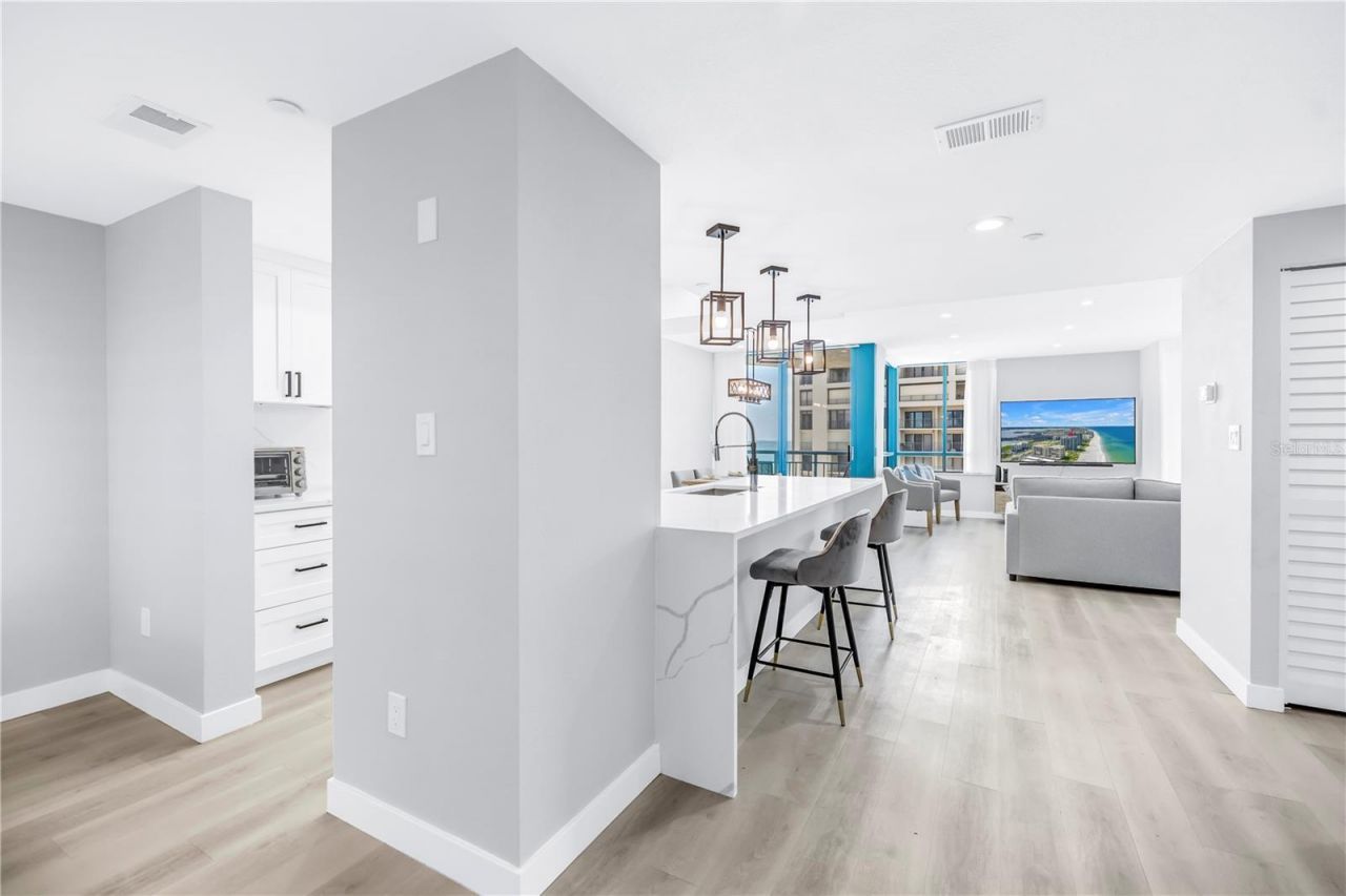 One or more photo(s) has been virtually staged. Welcome to Unit 906 at Ultimar One-a beautifully renovated 2-bedroom, 2-bath coastal sanctuary offering approximately 1,450 sq. ft. of refined living space within one of Sand Key's premier resort-style communities.Perched elegantly above the shoreline, this residence offers a rare blend of privacy and breathtaking vistas. Nearly every room frames panoramic water views, creating a tranquil backdrop from sunrise to sunset. Originally constructed in 1991, the home has been thoughtfully and meticulously updated, showcasing premium Bosch appliances, a brand-new HVAC system, and a new water heater for modern comfort and peace of mind.Inside, bright, airy interiors flow effortlessly, offering a versatile layout suited to both relaxed coastal living and amazing entertaining. Whether you envision a serene seaside retreat or a stylish gathering space, this home adapts beautifully to your lifestyle.Ultimar's world-class amenities elevate everyday living: three heated pools-including a lap pool-spas, six tennis courts, a half basketball court, putting green, croquet lawn, and meticulously landscaped grounds. Residents also enjoy a beautifully appointed clubroom with full kitchen, billiard and media rooms, a state-of-the-art fitness center with steam and sauna, on-site management, and 24-hour security.Perfectly positioned on pristine Sand Key, you're just steps to the beach and moments from the dining, shopping, and coastal attractions of Clearwater Beach.Experience the very best of Gulf-coast living-schedule your private showing today.