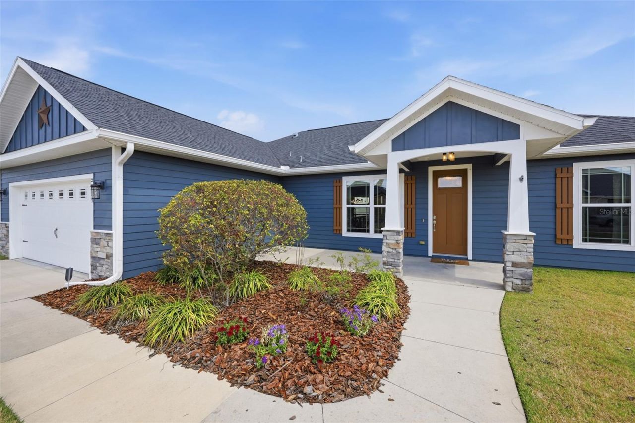Welcome to the perfect blend of modern upgrades, thoughtful design, and small-town charm - just minutes from Gainesville. Beautifully upgraded 3-bedroom, 2-bath home in Country Way Town Square in Newberry-offering small-town charm just minutes from Gainesville. Built in 2019, this home features an open floor plan with luxury vinyl plank flooring throughout, 8-foot doors, and custom ceiling details. The kitchen is a standout with a 9-foot island, farmhouse sink, granite countertops, and ample cabinetry, opening to a spacious great room with a statement windmill-style fan and custom barn door accents. The split floor plan offers a private primary suite with tray ceiling, rope lighting, walk-in closet, and a spa-like bathroom with dual vanities and a large tiled shower with multiple showerheads, including a rain head. Two additional bedrooms and a full bath are located on the opposite side of the home. Additional features include an epoxy garage floor, seamless gutters, smart irrigation system, screened-in porch, and paver patio. Community amenities include a pool, sidewalks, and convenient access to nearby dining and shops, including Jim's and Stone House Grill.