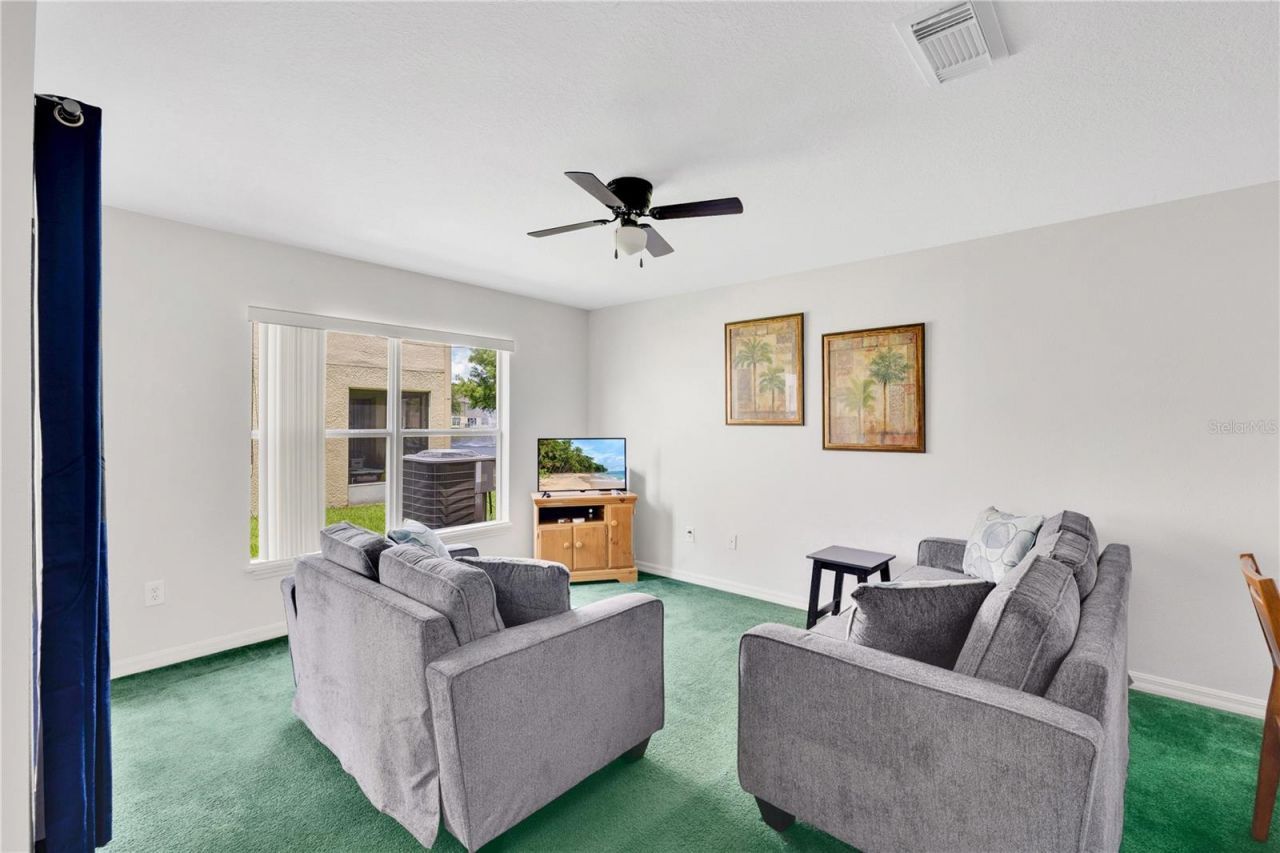 This beautifully maintained 4-bedroom, 3-bathroom home offers the perfect blend of comfort, versatility, and modern touches in a quiet, welcoming neighborhood. The bright and spacious layout features an open living area that flows into a designated dining space and a functional kitchen with plenty of cabinet storage and NEWER APPLIANCES. One bedroom is conveniently located downstairs for added flexibility, along with a full bathroom nearby-ideal for guests or multigenerational living. Upstairs, you'll find the large PRIMARY BEDROOM with its own PRIVATE MASTER BATHROOM, TWO ADDITIONAL BEDROOMS, and a SECOND FULL BATHROOM to comfortably accommodate family or guests. All bathrooms have been updated with tasteful modern finishes. THE A/C WAS REPLACED IN 2019, and MANY FEATURES HAVE BEEN RECENTLY UPDATED to ensure the home is in top condition-IDEAL FOR AIRBNB OR SHORT-TERM RENTAL USE. While it can absolutely serve as a comfortable PRIMARY RESIDENCE, the community is WELL-SUITED FOR VACATION RENTALS, making this property a strong investment opportunity. CLOSE TO THEME PARKS, SHOPPING, DINING, AND MAJOR HIGHWAYS, this location offers both everyday convenience and a peaceful retreat.