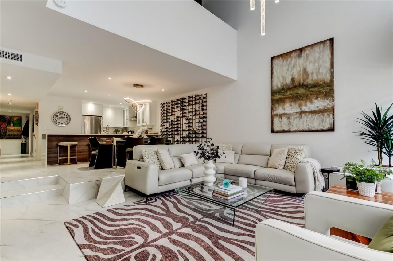 In the heart of downtown St. Petersburg, this truly one-of-a-kind townhouse offers a rare combination of striking design, high-end renovations, and an unbeatable location. Completely updated from top to bottom, the home is move-in ready with no detail overlooked. A private two-car garage is complemented by two additional guest parking spaces, an exceptional feature for downtown living. Inside, soaring 20-foot ceilings and a dramatic chandelier create an unforgettable first impression. The custom kitchen showcases two-tone European-style cabinetry, quartz waterfall countertops, designer backsplash, and newer premium appliances. High-quality finishes continue throughout, including oversized 24x48 tile flooring on the main level, luxury vinyl flooring upstairs, seven-inch baseboards, modern three-panel interior doors, and extensive recessed lighting. The primary suite features a spacious bedroom and a beautifully designed bathroom with oversized tile, a custom quartz vanity, LED mirror, and an elegantly detailed walk-in shower. Two tiled balconies and a private back porch provide ideal outdoor spaces for relaxing or grilling. Additional upgrades include Hunter Douglas blinds and Plantation shutters, designer lighting fixtures, and major systems replaced recently, including A/C, water heater, and roof. Just steps from Beach Drive, the Pier, Vinoy, museums, dining, parks, and entertainment, this spectacular townhouse delivers luxury, convenience, and downtown lifestyle at its finest.
