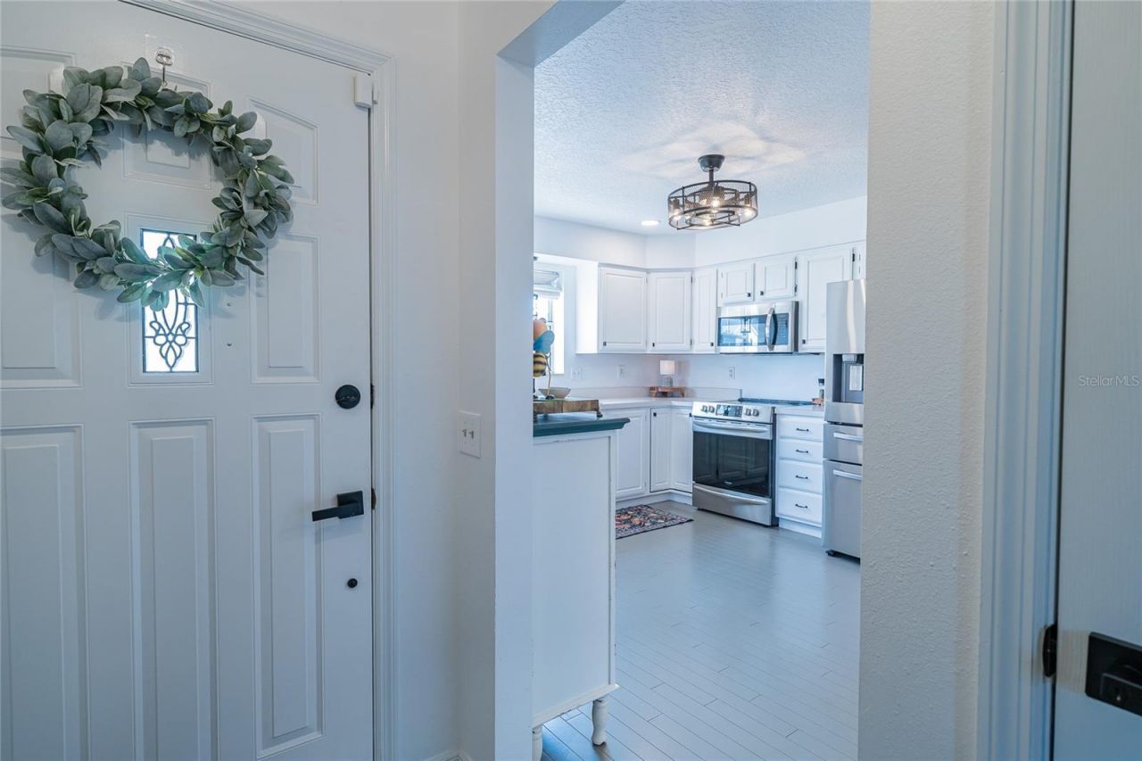 Qualified buyers have the possibility to ASSUME the VA loan already in place at 5.63%! Looking for an updated home? Search no more! Seller purchased home in 2023 and has continued to improve since day 1! Extensive upgrades can be seen from the moment you pull in the driveway. Brand NEW roof in 2025 to new coach lights on both sides of the new hurricane rated garage door (installed in 2023 with NEW tracts). The kitchen has FRESHLY painted cabinets, NEW lighting and ceiling fan, NEW appliances and beautifully painted wood floors. Living room and bedroom have stained concrete floors with crisp, clean walls. Modern, barn doors (2024) open up to the office. This awesome room would be perfect for a home office with french doors (upgraded with inside pane blinds) that lead to the back patio. Guest bathroom has sleek vanity, NEW lighting, mirror, hardware and NEW chair height, soft close commode, less than 2 years old. Master suite has an amazing closet that doubles as a changing room. The current owner has a vanity and a dresser in it along with all the normal closet stuff. Master bathroom has DUAL sinks, chic vanity, NEW lighting, NEW chair height, soft close commode and walk in shower has charcoal filter. The same modern barn doors separate the ensuite from the bedroom. Very stylish. 55+ community has a pool, shuffleboard, clubhouse and lots on the event calendar. This home is on a corner lot offering a little more space. The a/c unit is maintained annually and has a UV light installed. More great features and upgrades include new water heater in 2023, extended back patio that reaches the length of the house, new sod, new landscaping all in 2025. Every room has new lighting, ceiling fans and paint. So many valuable upgrades that you are sure to appreciate.