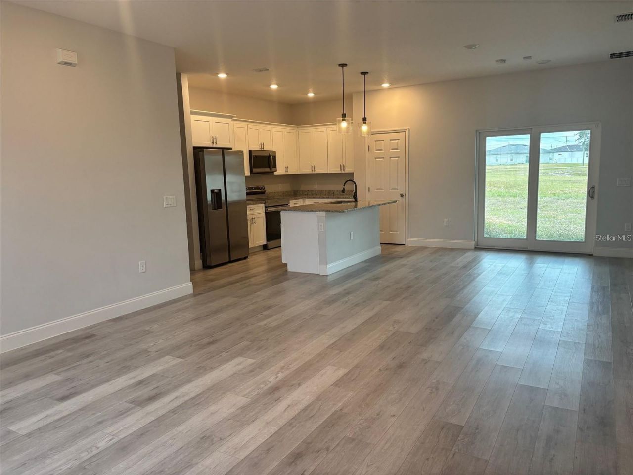 Enter into this light and bright almost new home to a very large open living area! Wood look laminate throughout except the bedrooms for ease of cleaning. The kitchen comes complete with a large island/breakfast bar. Stainless steel appliances including microwave, stove, dishwasher and fridge. Can lighting makes this home extra bright! Large pantry and a slider goes out to the large covered back porch. No rear neighbors and nice field to view from the back porch. The master suite is a dream come true with his and her closets, a large walk in shower and huge soaker tub! There is an inside utility room complete with washer and dryer as well. 2 full bathrooms and a 1/2 bath off the living area for guests! This property is move in ready all located in the south part of Polk County minutes from major highways. Don't wait, call for a private showing today!