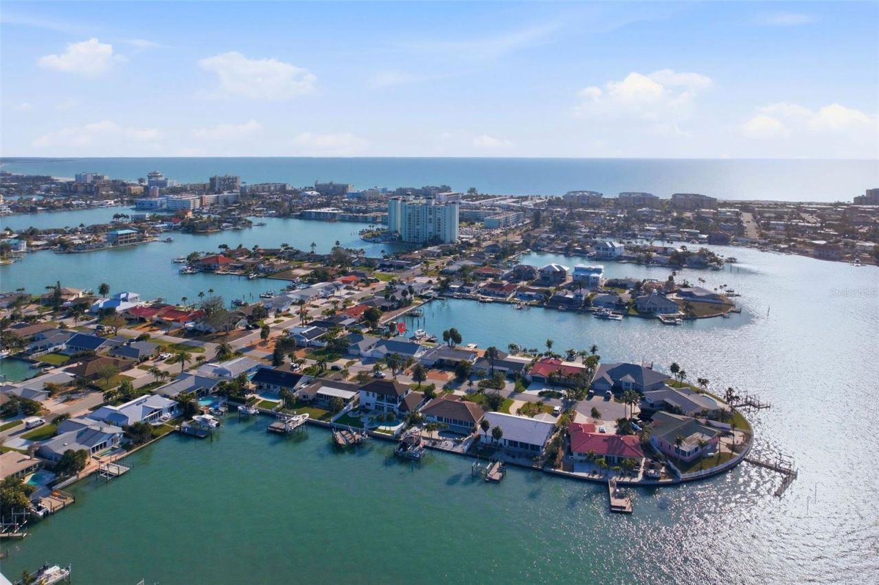 Welcome to this exceptional waterfront luxury residence in the heart of highly sought after St. Pete Beach, where modern upgrades, coastal elegance, and premier Florida lifestyle converge. This beautifully updated 4 bedroom, 2 bath single story waterfront pool home is perfectly positioned just three blocks from the world renowned Gulf beaches, offering the rare combination of deep water access, boating convenience, and walkable beach living. Designed with both sophistication and functionality in mind, the interior showcases stunning porcelain tile flooring throughout, creating a seamless, durable, and elegant living environment. The chef's kitchen features upgraded Bespoke appliances including a sleek matte cooktop, wine refrigerator, and modern quartz countertops ideal for entertaining and everyday living. The spacious open living area is enhanced by a contemporary electric fireplace, creating a warm and inviting focal point. The home is thoughtfully appointed with premium upgrades, including hurricane screens for peace of mind, a smart Ecobee thermostat for energy efficiency and climate control, plantation shutters, and sliding glass doors with built-in blinds providing effortless indoor/outdoor living, privacy, and convenience. Step outside to the private tropical waterfront oasis designed for the ultimate Florida lifestyle. The resort style pool features a relaxing sun shelf perfect for lounging in the Florida sunshine. The fully equipped pergola creates an extraordinary outdoor living space complete with full electrical service and two mounted televisions, ideal for year round entertaining. The property also features low maintenance AstroTurf in both the front and backyard, delivering lush green landscaping without the upkeep. Boating enthusiasts will appreciate the composite dock and 13,000-pound boat lift, providing convenient access to the Intracoastal or the Gulf making this property ideal for boating, fishing, and sunset cruising. Exceptional curb appeal is highlighted by a pavered circular driveway offering ample parking. This prime St. Pete Beach location provides easy access to waterfront recreation, sugar sand beaches, waterfront dining, and coastal amenities, while also offering close proximity to the vibrant downtown St. Petersburg district featuring award winning restaurants, boutique shopping, art galleries, waterfront parks, and renowned museums. A rare opportunity to own a fully upgraded coastal retreat combining modern design, premium amenities, boating access, beach proximity, and the very best of Florida waterfront living.