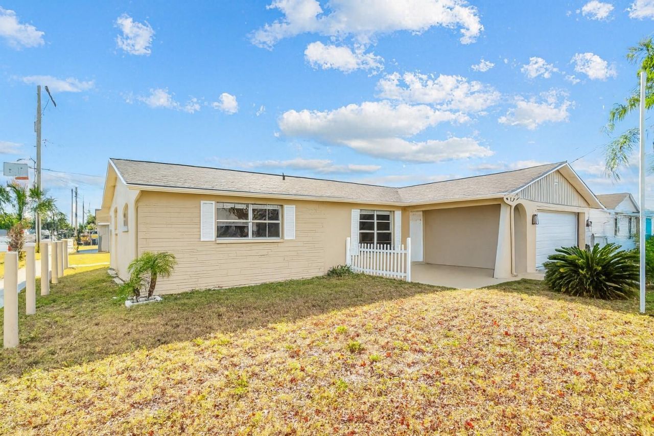 One or more photo(s) has been virtually staged. Welcome home! This beautifully fully renovated corner home offers 2 bedrooms, 2 bathrooms, and over 1,500 sq. ft. of modern open concept living on a single story for comfort and convenience. With brand new updates throughout, this home is designed for stylish, easy, and low-maintenance living.Inside, the layout flows smoothly through a bright and spacious living and dining area filled with natural light. Just off the main space is a versatile flex room, perfect for a home office, playroom, additional lounging or easily converted into a third bedroom with the addition of a door and closet, offering excellent flexibility for growing households or guests. Brand-new luxury white oak-washed vinyl flooring runs throughout the home, adding durability, warmth, and an elevated designer feel.The sleek modern kitchen features granite countertops, stainless steel appliances, a brand new dishwasher, extended counter bar seating, and generous cabinet storage with soft close features.Both bathrooms have been tastefully redesigned with floor to ceiling tile, modern spa like fixtures, granite countertop vanities that have abundant storage and soft close cabinetry. The two spacious bedrooms provide comfortable retreats, each offering ample closet space and room for customizing your ideal setup.Step outside to enjoy indoor and outdoor living on the private covered lanai or on the open patio, ideal for entertaining, gardening, or unwinding.Additional highlights include a 2-car garage with a dedicated laundry area, ample closet space throughout, and major system updates for peace of mind including a newer roof (2020) and water heater (2024). This home is located in Flood Zone X, and there is no HOA or CDD. This modern, light filled home is move-in ready. Perfectly located near Downtown New Port Richey, shopping, dining, schools, hospitals, and major highways. Take advantage of a no cost appraisal when partnering with our preferred lender. Schedule your private showing today!