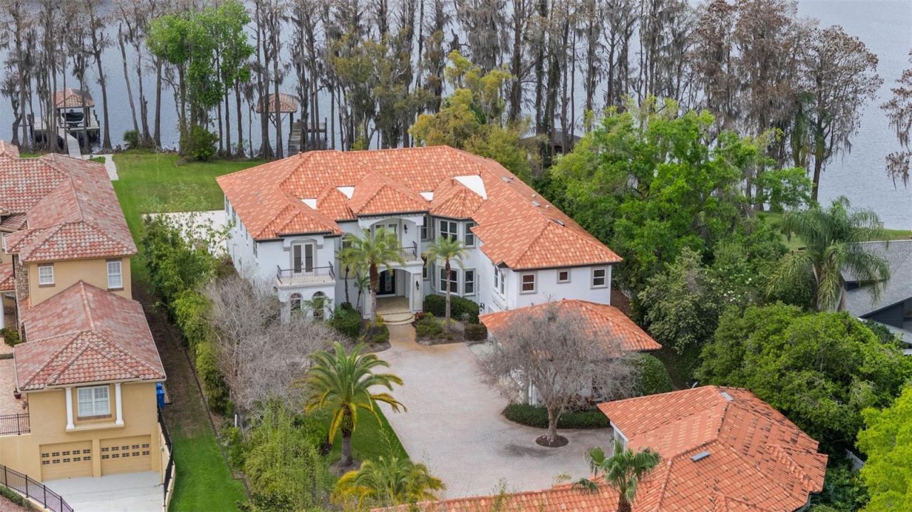 Set behind a long, palm-lined drive and privately positioned along the shores of ski-sized Lake Keystone, this extraordinary waterfront estate offers over four acres of secluded luxury-creating a rare retreat designed for privacy, recreation, and grand-scale entertaining.From the moment you arrive, the estate unfolds with an impressive sense of scale and arrival. Inside, soaring ceilings, a dramatic winding staircase, and a breathtaking two-story wall of clerestory windows flood the home with natural light while framing sweeping lake views. The grand living room is anchored by a statement fireplace with custom built-ins and opens seamlessly through French doors to an expansive veranda, blurring the lines between indoor elegance and outdoor lakefront living.At the heart of the home, the chef's kitchen blends craftsmanship and performance with exquisite custom wood cabinetry, a gas Wolf range, Sub-Zero refrigeration, twin dishwashers, a built-in Miele coffee system, wine cooler, and an oversized center island designed for entertaining on any scale.The primary suite offers a tranquil private retreat, complete with its own coffee bar and a spa-inspired bath designed for restoration and relaxation.Upstairs, four generously sized bedrooms with en-suite baths provide comfort and privacy for family and guests, complemented by a loft-style library and spacious bonus room perfect for media, gaming, or lounge space.A rare additional 2,000+ square feet of unfinished first-floor space presents an exceptional opportunity to customize the estate even further-ideal for a private gym, sports recovery suite, home theater, golf simulator, or luxury guest quarters.Outdoors, the property transforms into a private resort. A sparkling pool and spa overlook the lake, while a private dock with lift provides immediate access to boating, skiing, and sunset cruises on Lake Keystone-one of Tampa Bay's most coveted waterfront communities.For the automotive enthusiast or collector, the estate offers climate-controlled garage space for up to eleven vehicles, creating a showcase-level garage rarely found in residential estates.With its gated approach, expansive grounds, and unparalleled privacy, this property is perfectly suited as a private lakefront retreat for athletes, entertainers, or those seeking a luxury escape just minutes from Tampa's best dining, airports, and professional sports venues.