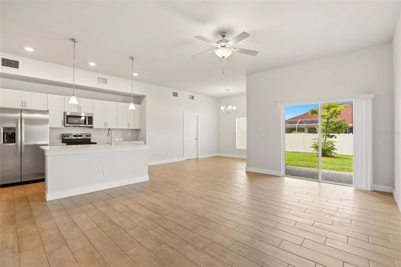 Welcome to this 2022 Mardon Construction-built Alison model home in Port Charlotte, offering 4 bedrooms, 2 bathrooms, and 1,710 square feet of thoughtfully designed living space. This attractive single-story residence features a clean, modern exterior, a classic hip-roof design, and a paver driveway leading to a spacious two-car garage. Step inside to a bright, open-concept floor plan where the kitchen, living room, and dining area flow seamlessly-perfect for both entertaining and everyday living. Tile flooring extends throughout the entire home, providing a cohesive, low-maintenance finish ideal for Florida living. High ceilings, recessed lighting, and abundant natural light enhance the open and airy atmosphere. The modern kitchen showcases white cabinetry, stainless steel appliances, a breakfast bar, and pendant lighting, all overlooking the main living areas. The laundry room is conveniently located off the kitchen and includes a washer, dryer, and utility sink. Sliding glass doors provide easy access to the outdoor space. The primary suite is privately located on one side of the home, offering a peaceful retreat complete with his and her walk-in closets, a dual-sink vanity, a walk-in shower, and a private toilet room. On the opposite side of the home, three additional bedrooms-each with built-in closets-share a full bathroom. Any of these rooms can easily serve as a home office, guest room, gym, or flex space to suit your lifestyle. Out back, enjoy a covered patio with ceiling fan, perfect for relaxing or entertaining year-round. The large backyard provides ample space to add a pool or create your own custom outdoor oasis. The home's HVAC system is located within the conditioned space, meaning the heating and cooling equipment is placed inside the insulated, climate-controlled areas of the home. This design helps improve energy efficiency, provides easier maintenance access, and ensures the system operates in a protected environment for reliable year-round comfort. Additionally, the home features a separate 50-amp breaker in the electrical panel and is prewired to specifically handle an 8,500-15,000-watt generator, offering peace of mind and convenience during power outages. The property is also connected to public water and sewer, eliminating the need for a well or septic system. Situated in a well-established neighborhood close to shopping, dining, schools, and all that Port Charlotte has to offer, this home is move-in ready, low maintenance, and thoughtfully designed for modern Florida living.**PLEASE ENJOY THE 3D INTERACTIVE VIRTUAL TOUR ASSOCIATED WITH THIS LISTING**