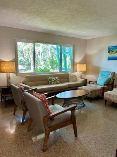 Charming, updated, mid-century modern style home just blocks from the beach. Light and bright living room with refinished terrazzo flooring. Carefully restored kitchen cabinets, locally crafted countertops glittering with sea glass plus stainless-steel appliances make this kitchen the true heart of the home. Expansive bar with beverage cooler & serving area. Swanky dining area overlooks a private, tropical backyard. After a day at the beach, continue to enjoy the outdoors in the large fenced-in yard ready for a BBQ, complete with outdoor shower, hot tub, gas firepit, comfy seating and grill. Furnished and ready for move in!